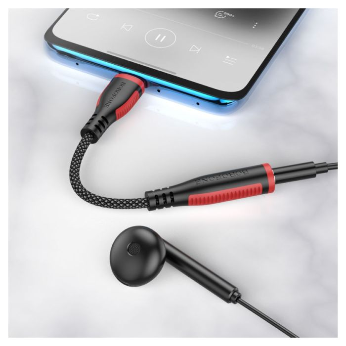 Ένας πρακτικός αντάπτορας από USB Τype-C σε υποδοχή 3,5mm ακουστικών. Αποτελείται από ένα μικρό βύσμα συνδεδεμένο στο τηλέφωνο και ένα ανθεκτικό καλώδιο από πλεκτό νάιλον που αυξάνει την εμβέλεια του αντάπτορα. Επιτρέπει την ακρόαση της μουσικής από ακουστικά με βύσμα mini Jack 3.5mm και άλλες συσκευές ήχου που υποστηρίζουν 3.5mm mini jack, όπως ηχεία υπολογιστή και στερεοφωνικά αυτοκινήτου. Είναι μια βολική λύση για όλες τις συσκευές χωρίς θύρα ακουστικών και το μικρό μέγεθος του αντάπτορα σας επιτρέπει να τον έχετε πάντα μαζί σας. Ο αντάπτορας αυτός δεν λειτουργεί σε συσκευές που ήδη διαθέτουν μια ενσωματωμένη θύρα 3.5mm mini jack.
