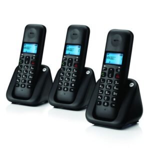 Το Motorola T303 Triple περιλαμβάνει τρία ασύρματα τηλέφωνα και αλλάζει την επικοινωνία σας. Αρχικά, ενσωματώνει οθόνη LCD μπλε οπίσθιου φωτισμού 1.8 ιντσών για να βλέπετε τα πάντα με μία απλή ματιά ακόμα και σε χαμηλό φωτισμό. Τώρα, η λειτουργία ανοικτής ακρόασης θα σας βοηθήσει καθοριστικά όταν επιθυμείτε κι άλλα άτομα ν’ ακούσουν τη συνομιλία και στις περιπτώσεις που δεν θέλετε να κρατάτε τη συσκευή στα χέρια σας, για παράδειγμα όταν κρατάτε σημειώσεις ή εργάζεστε, για απόλυτη ευελιξία!