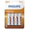 Μπαταρίες ΑΑΑ της Philips για συσκευές χαμηλής κατανάλωσης. Για τα προϊόντα χαμηλής κατανάλωσης, επιλέξτε μπαταρίες LongLife. Η τεχνολογία ψευδαργύρου-χλωριδίου εξασφαλίζει μεγάλη διάρκεια ζωής όταν χρησιμοποιείται σε συσκευές με χαμηλή κατανάλωσης ισχύος όπως ρολόγια, ραδιόφωνα, αριθμομηχανές και τηλεχειριστήρια. Διατηρεί την ισχύ έως και 3 χρόνια. Για ευκολότερη αναγνώριση των συνηθέστερων μεγεθών μπαταρίας, έχουν χρησιμοποιηθεί τα βιομηχανικά πρότυπα χρωματικής κωδικοποίησης για τα μεγέθη των μπαταριών. Επιπλέον δεν περιέχονται επιβλαβή βαριά μέταλλα, όπως είναι το κάδμιο και ο υδράργυρος.