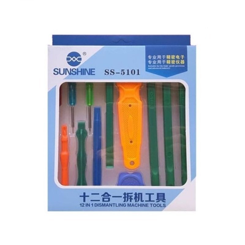 Κιτ 12 εργαλείων για το άνοιγμα κινητών τηλεφώνων, και ειδικότερα για κινητά Apple iPhone, SS-5101 από την Sunshine. Κατάλληλο για λεπτές επισκευές σε μικρά ηλεκτρονικά.