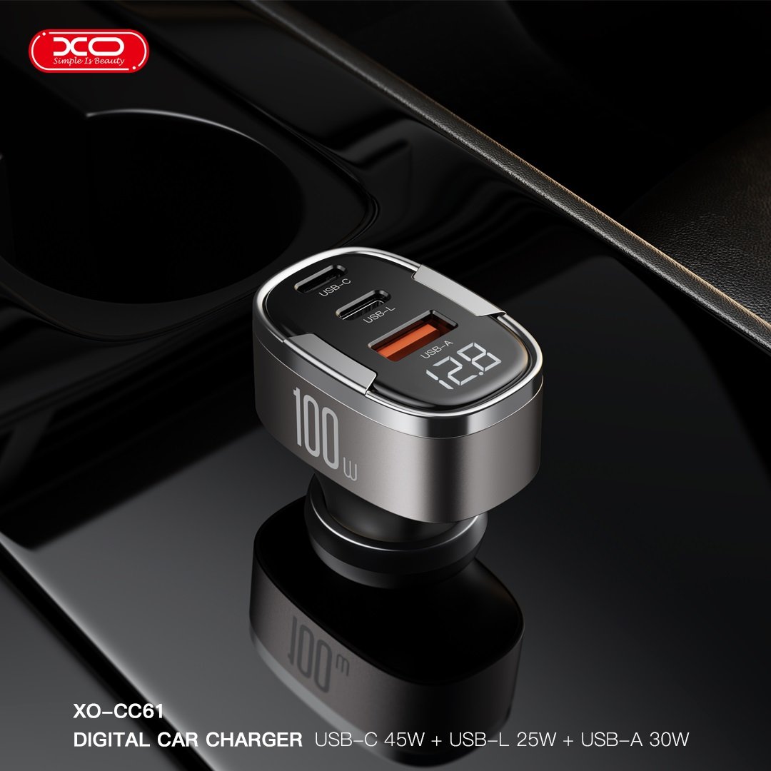 Universal φορτιστής αυτοκινήτου με 3 εξόδους, με ενσωματωμένη οθόνη ένδειξης της τάσης σε μαύρο χρώμα. Είναι συμβατός με όλα τα smartphones, tablets και άλλες συσκευές που φορτίζονται μέσω USB. Η μέγιστη ισχύς εξόδου αγγίζει 100W για να φορτίζετε με υπερ-υψηλή ταχύτητα έως και τρεις συσκευές ταυτόχρονα.