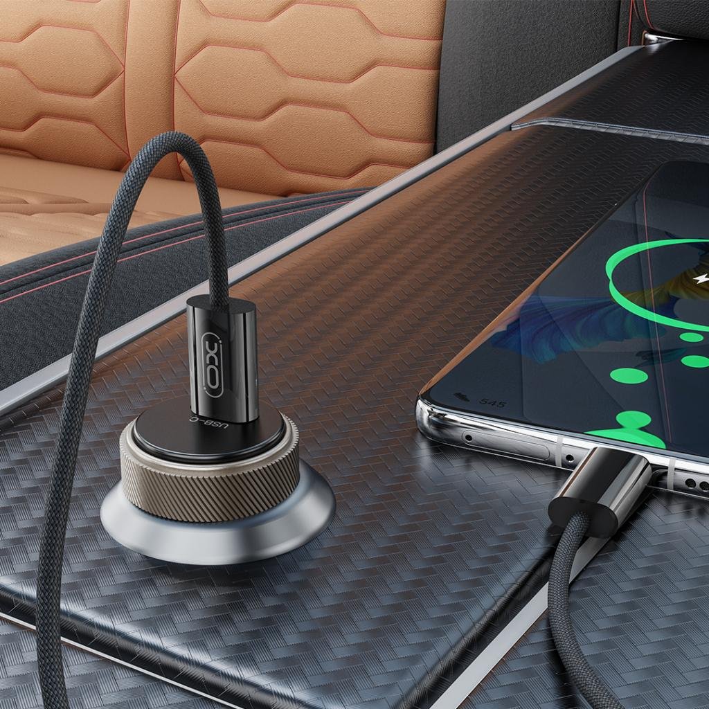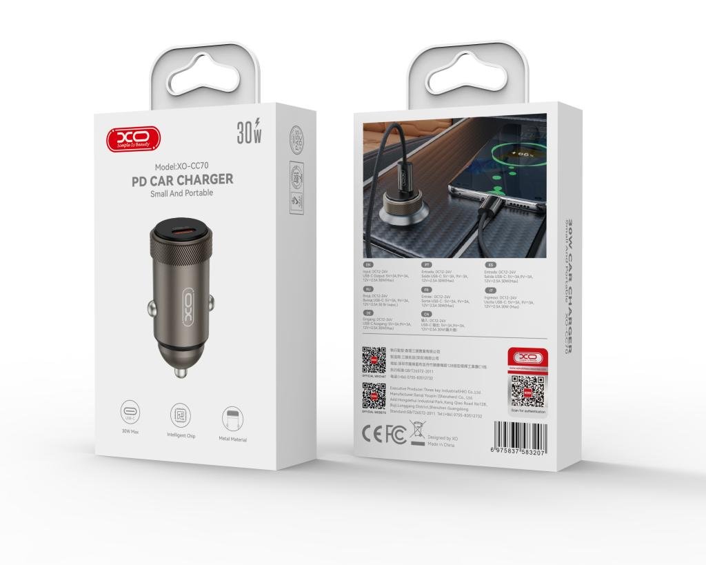 Μίνι μεταλλικός φορτιστής CC70 από την ΧΟ. Συνδέεται άμεσα στον αναπτήρα του αυτοκινήτου σας για να φορτίζετε το κινητό ή το tablet σας εν κινήσει ώστε να μην ξεμένετε ποτέ από ενέργεια. Με υψηλή ισχύ 30W και υποστήριξη πολλαπλών πρωτοκόλλων γρήγορης φόρτισης, εξασφαλίζει ότι η συσκευή σας θα φορτίσει αρκετά ακόμα και σε μικρές διαδρομές.