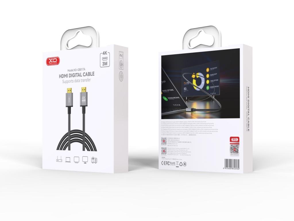 Συνδέστε συσκευές εικόνας μεταξύ τους με ευκολία χάρη στο ΧΟ GB017A. Το μήκος 3 μέτρων προσφέρει μεγάλη ευελιξία τοποθέτησης, απαραίτητη για μεγάλες τηλεοράσεις, προτζέκτορες, και συστήματα home cinema. Οι υψηλής ποιότητας αγωγοί φροντίζουν να μην υπάρχει απώλεια σήματος και προστατεύονται με ένα ισχυρό περίβλημα PVC και επιχρυσωμένα βύσματα ενισχυμένα με αλουμίνιο για μέγιστη ανθεκτικότητα και αντοχή στον χρόνο. Υποστηρίζει HDMI 2.0 με ανάλυση 4Κ στα 60Hz για να απολαμβάνετε υπερ-υψηλής ποιότητας εικόνα και ήχο.